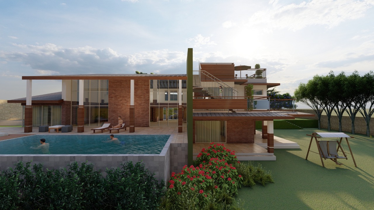 This villa is influenced by the French architecture with strong dominating features. An array of columns along the verandah overlooking the pool provide equanimity. The house opens into a large open space in front of the house and, whole house witnesses the unobstructed beautiful view of Pawana Lake. Structure is recessed slightly, so that one can appreciate the view.